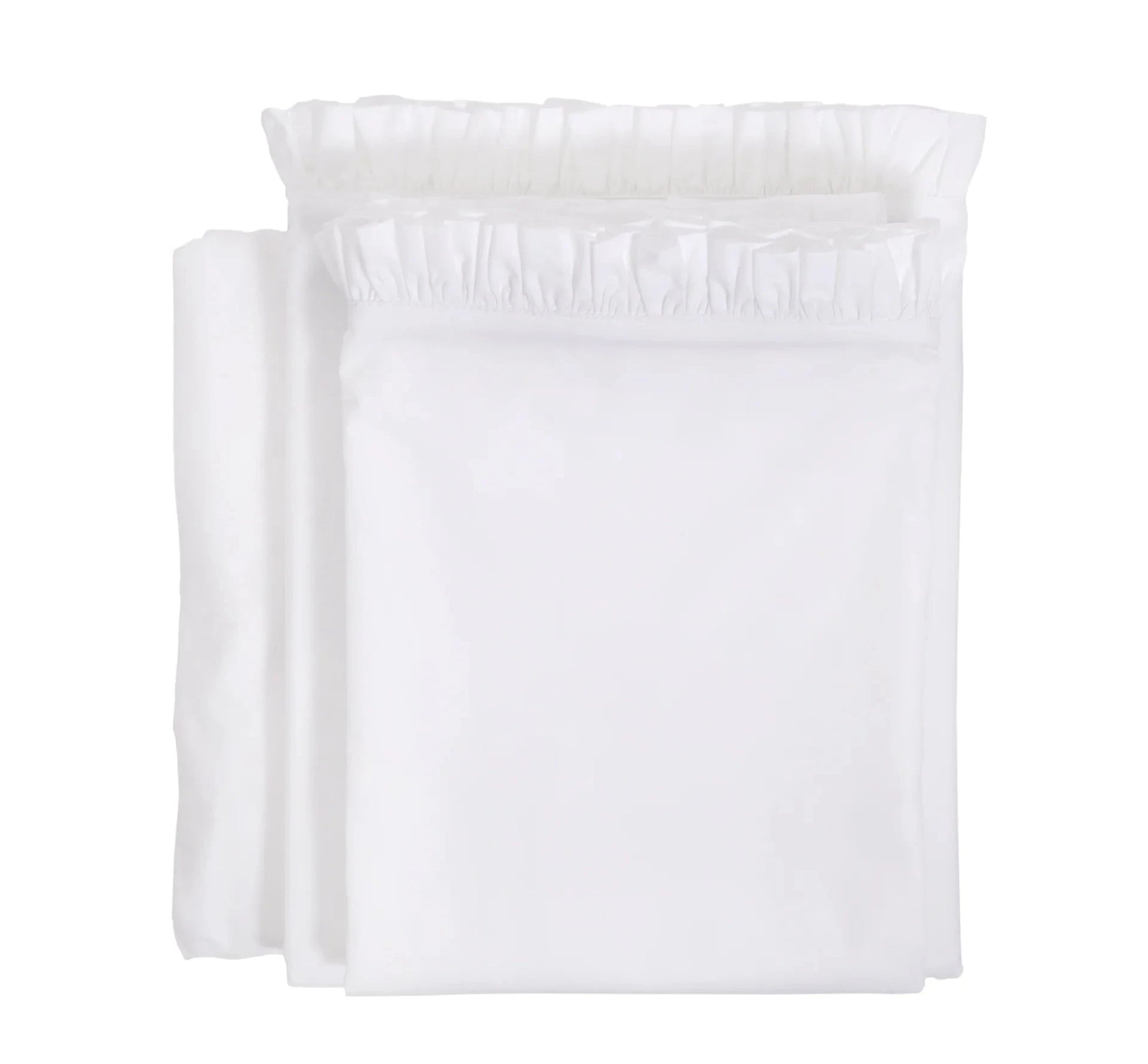 Made with a 1.5" ruffled edge, the Audrey Ruffle sheets have a soft and crisp feel, thanks to the use of percale material. This also creates a matte finish that adds a touch of elegance to any bedroom. Plus, the lighter and cooler fabric makes it the perfect choice for those who tend to get hot while sleeping. Experience the ultimate in comfort and style with our Audrey Sheet Set.