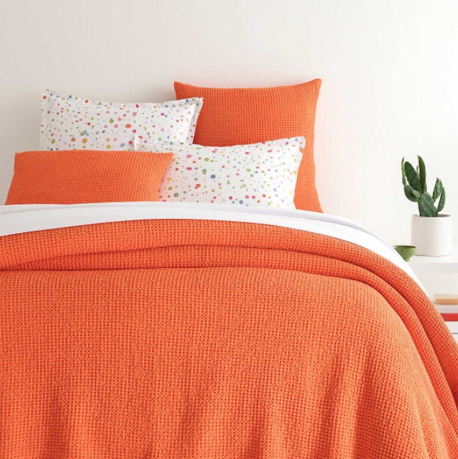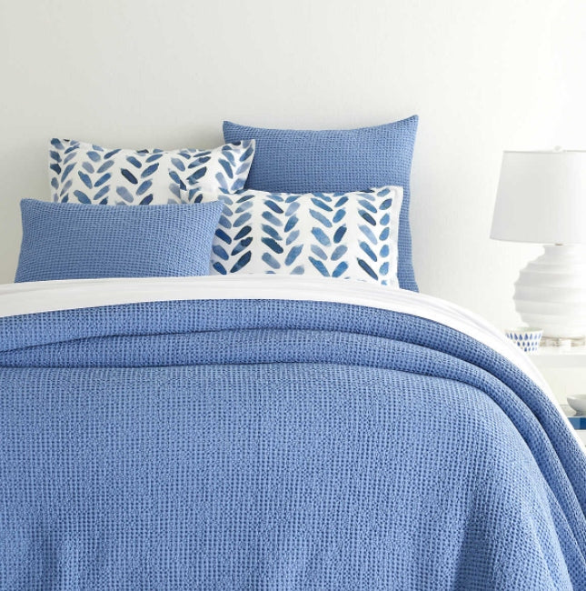 Dress your bed with our refreshed and updated cotton matelassé waffle weave for a frothy, soft look, texture and handfeel. Expertly woven in Portugal by weavers renowned for their artistry and expertise, generously sized and tailored, then stonewashed and tumbled to buttery soft laundered comfort.