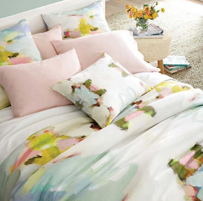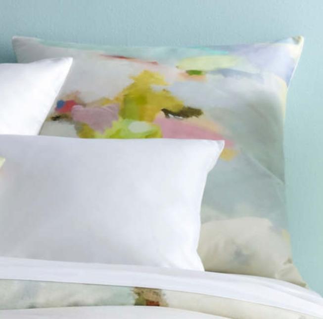 We developed the kaleidoscopic Milan print from the uniquely stylized work of artist Laura Park. Fresh and bright, playful and painterly are just a few words that describe the hallmark style of her paintings which feature layers of abstract washes within a beautiful palette. We then digitally print it for superb reproduction of the sophisticated watercolor technique on our luxuriously silky, smooth 400 thread-count long staple cotton sateen.