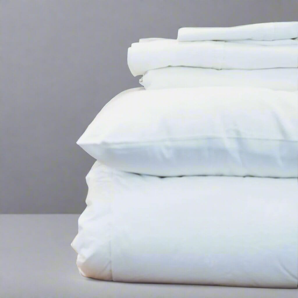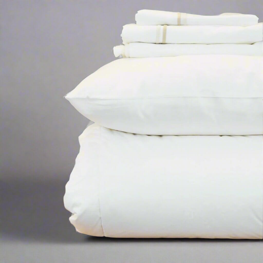 Bring home the luxury hotel experience! Create a vacation-worthy bed with our Top of Bed Bundle. The Essex duvet cover and shams are made from fine percale cotton and paired with our 100% European Down comforter and pillows, this bundle provides the look and feel of your favorite 5 star hotel bed.