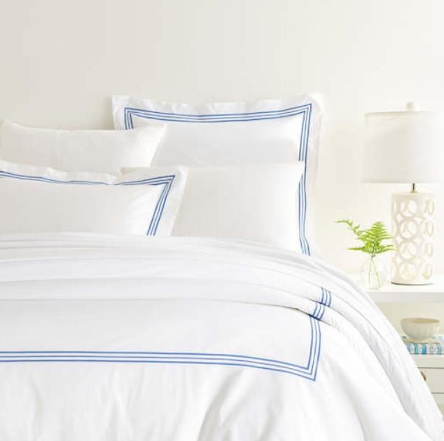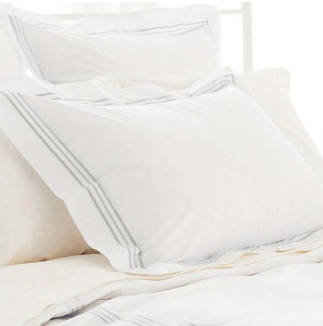A simple, three-lined pattern adds a touch of refinement to this classic white, 400 thread-count cotton sham. Coordinate with a variety of hues from neutral to bright for an easy, sophisticated look.