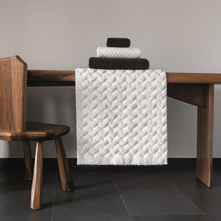 Super soft bath rug, made with the highest quality cotton, which provides excellent absorbency, durability and wonderful softness. Georgia is a double-structured bath rug: woven base with long tufting pile on top. Luxurious look and smooth touch.