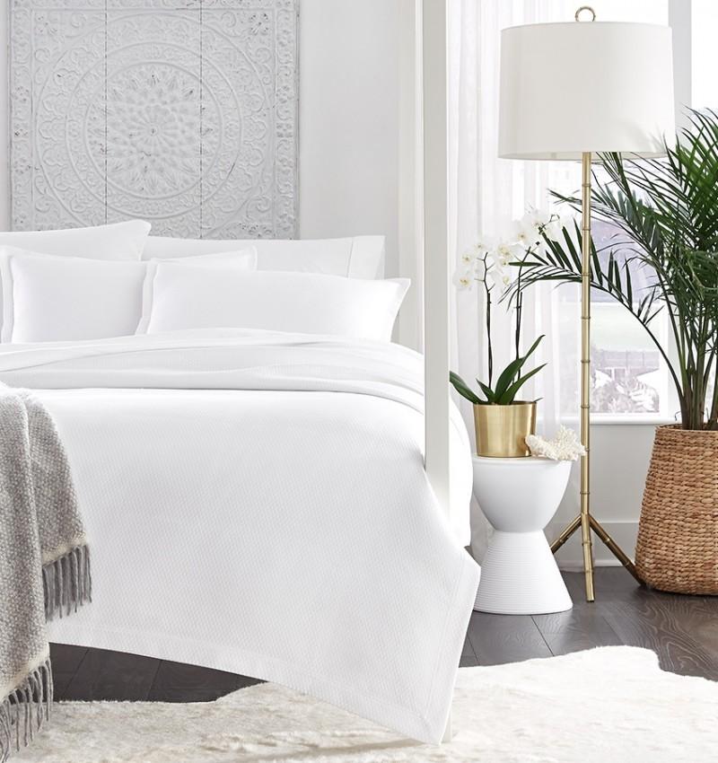 An effortless layering piece, Perrio’s matelassé shows a clean, contemporary pattern that adds softness and texture to any bed. Its dark and neutral tones reinforce the look of elegant simplicity.