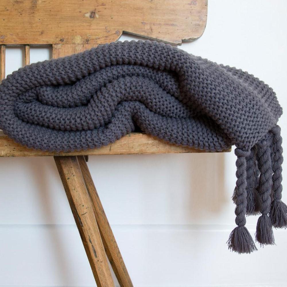 Indulge in this oversized cable-knit throw complemented with a tassel design. This is the perfect throw to wrap yourself with or dress at the foot of the bed.