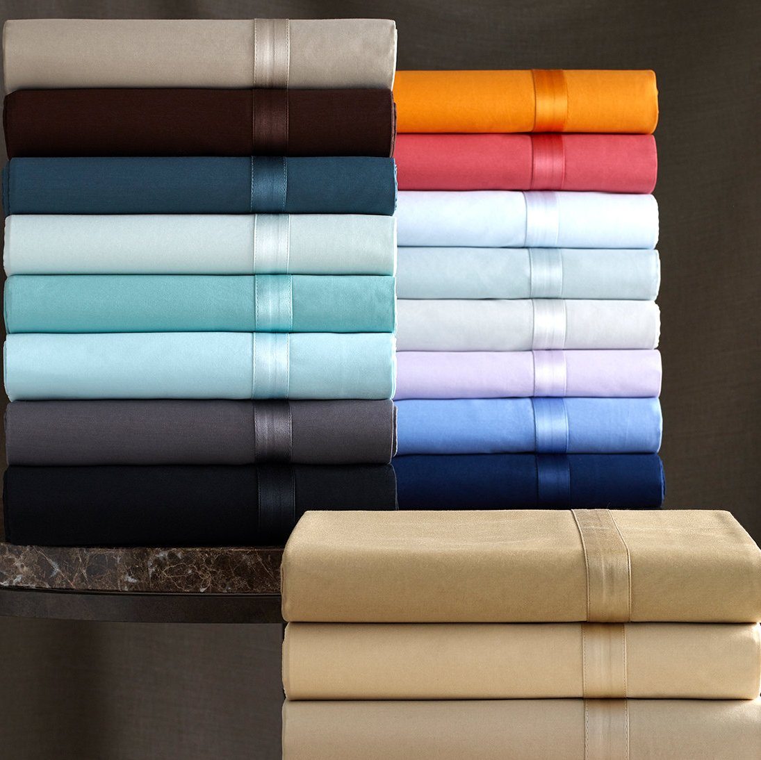 Luminous sateen made of Egyptian cotton woven in Italy is available in an array of opulent colors and finished with self-colored 1-inch border for a collection that exudes unrivaled charm.