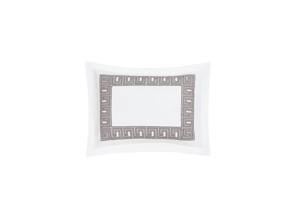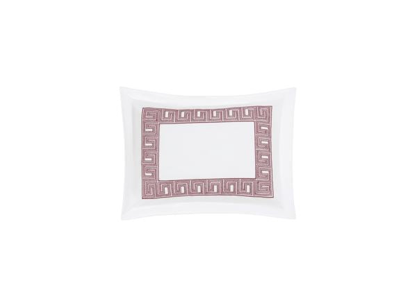 Inspired by an intricately beaded Schumacher tape, our boldly embroidered Ophelia collection embodies a traditional Greek key pattern with a bespoke sensibility. In 520 thread count Ceylon sheeting, it’s a playful, exuberant take on a traditional motif.