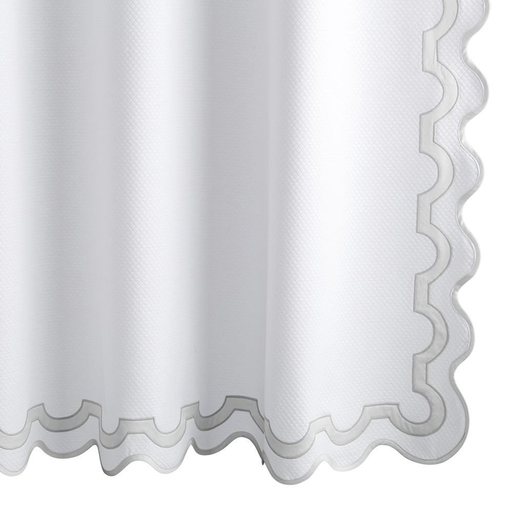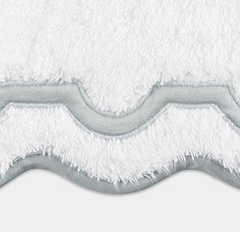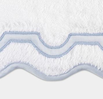 Inspired by the awning of a shop on Worth Avenue, our Mirasol collection is pure Palm Beach chic. Now available in Bath, Mirasol can be shared across the bedroom and bathroom, or can stand alone in either place. The Mirasol bath collection features Nocturne sateen applique details and piping on our best-selling Cairo terry bath towels and on our Diamond Pique shower curtain.