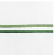 Crisp white percale sheeting features two lines of satin stitching tonal colors