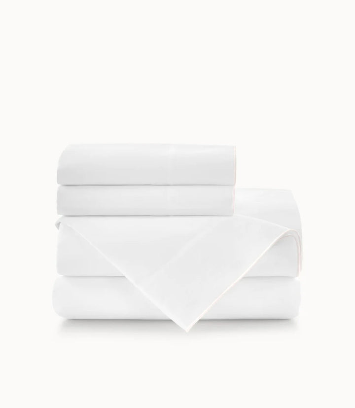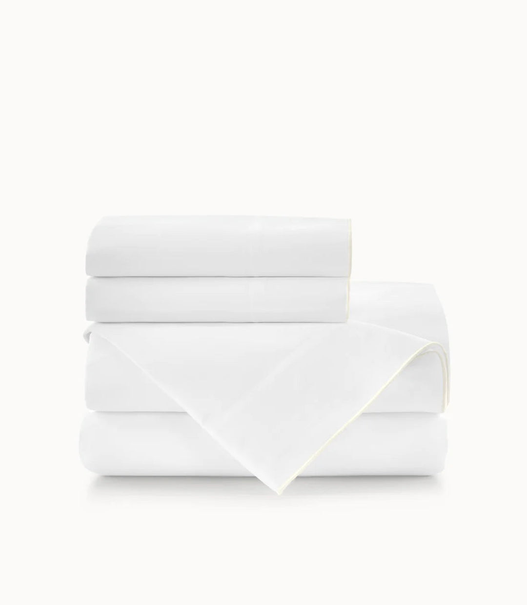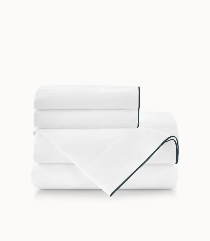 Available in a flat sheet, pillow cases and as a sheet set with coordinating white Soprano fitted sheet.