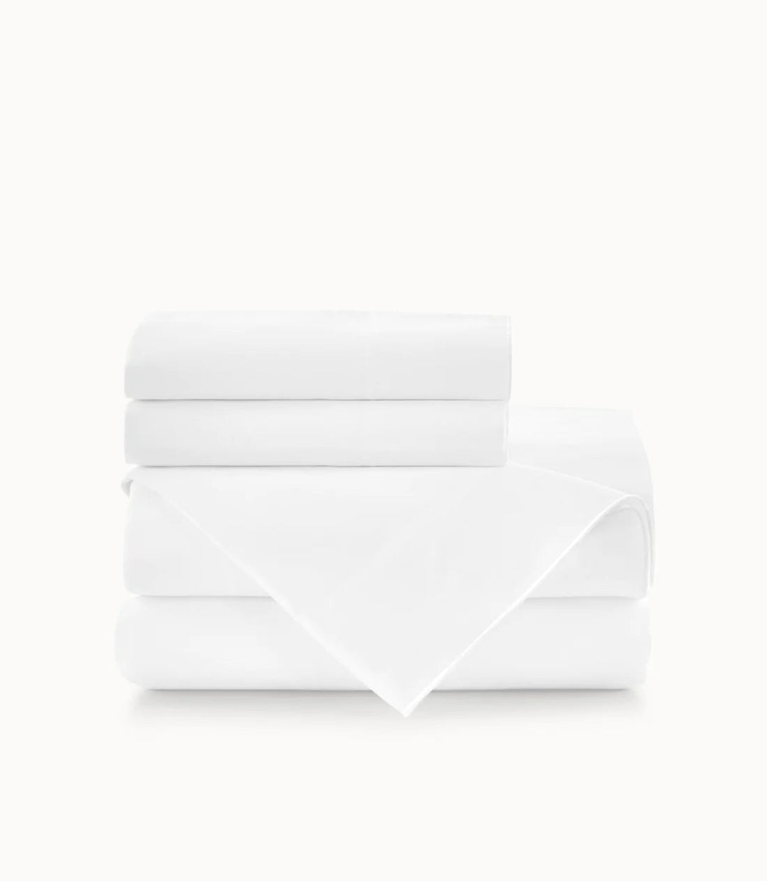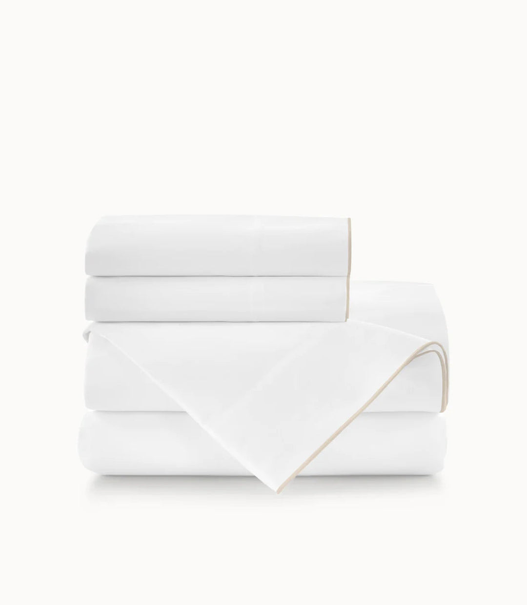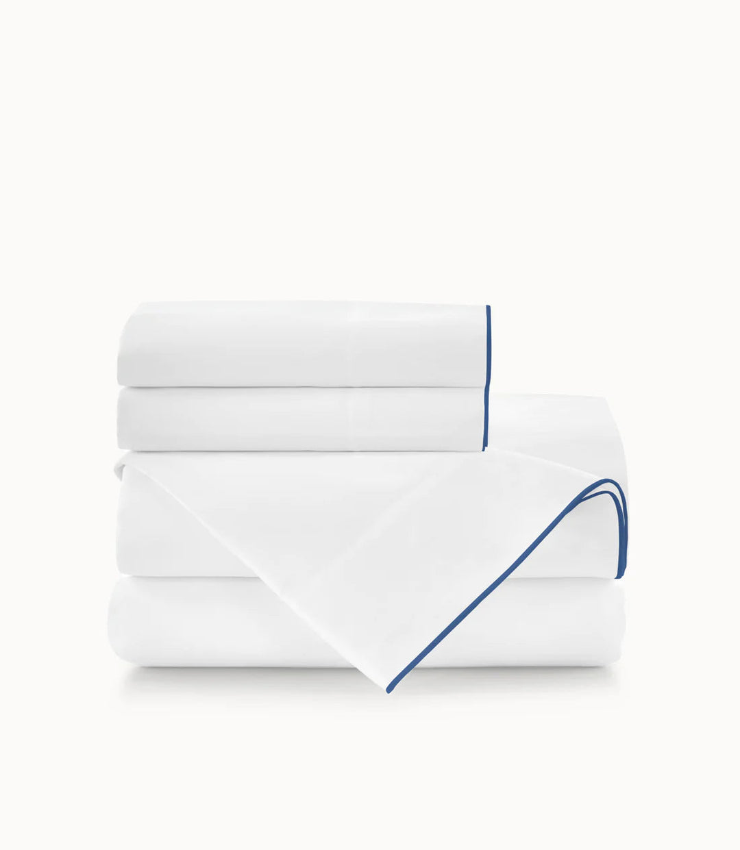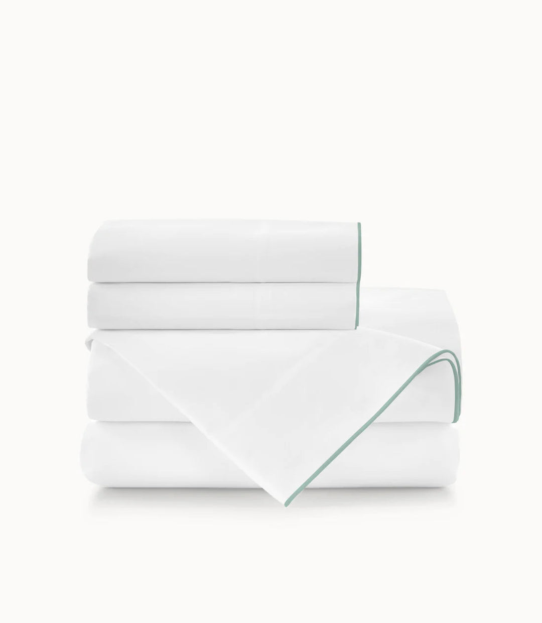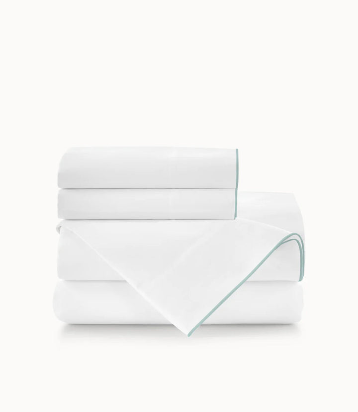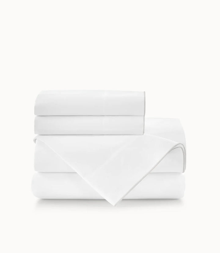 Available in a flat sheet, pillow cases and as a sheet set with coordinating white Soprano fitted sheet.