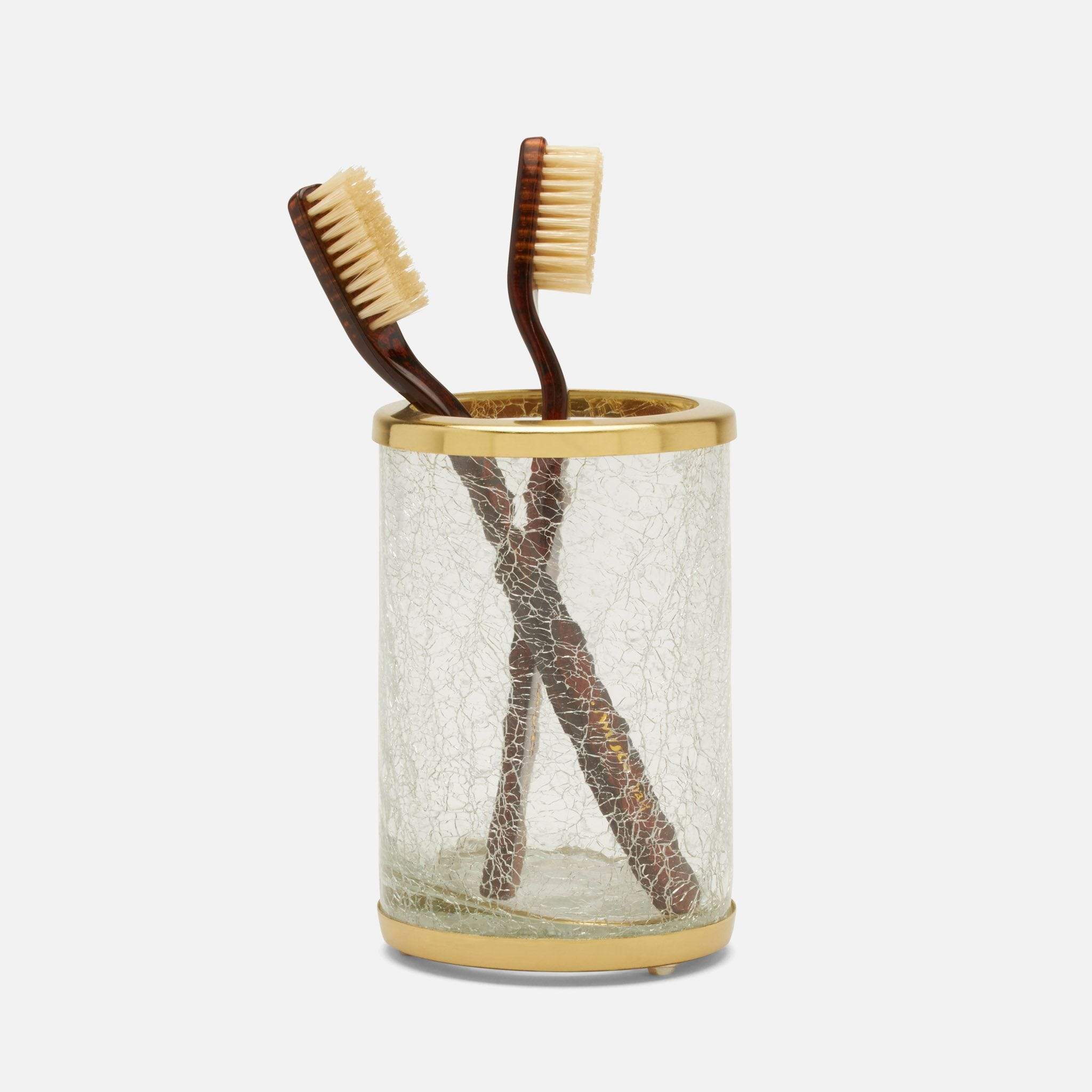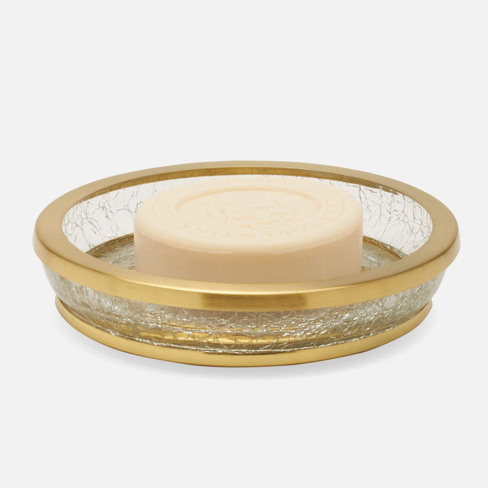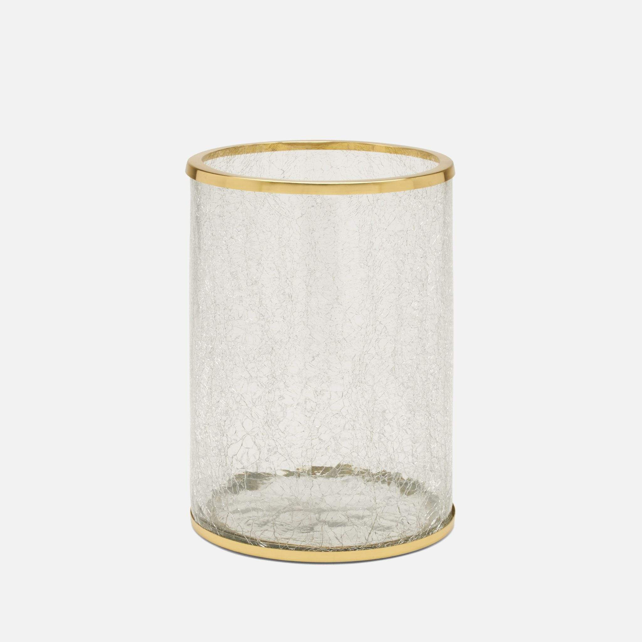 Subtly glamorous, our Pomaria bath collection brightens a bathroom with light-catching crackled glass accented in brushed gold, brushed silver, or dark bronze.
