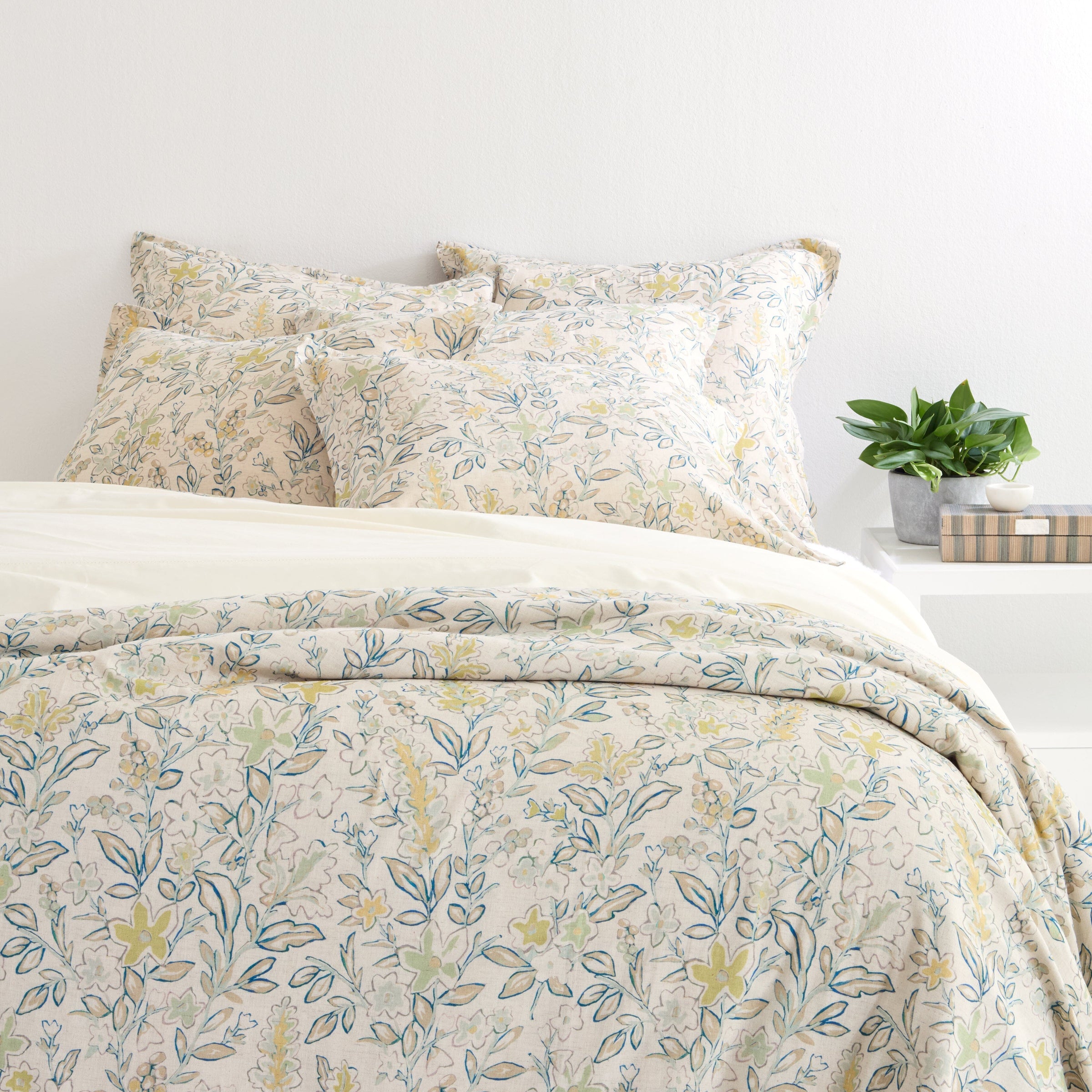 The Macie Blue/Green Collection brings a breath of fresh air to your bedroom. Inspired by a one-of-a-kind watercolor painting our designers discovered and loved, this botanical print weaves sage, sky, and navy florals across a soft cotton/linen flax blend. The natural, undyed background adds an effortlessly chic touch, making this cover as dreamy to look at as it is to snuggle under.