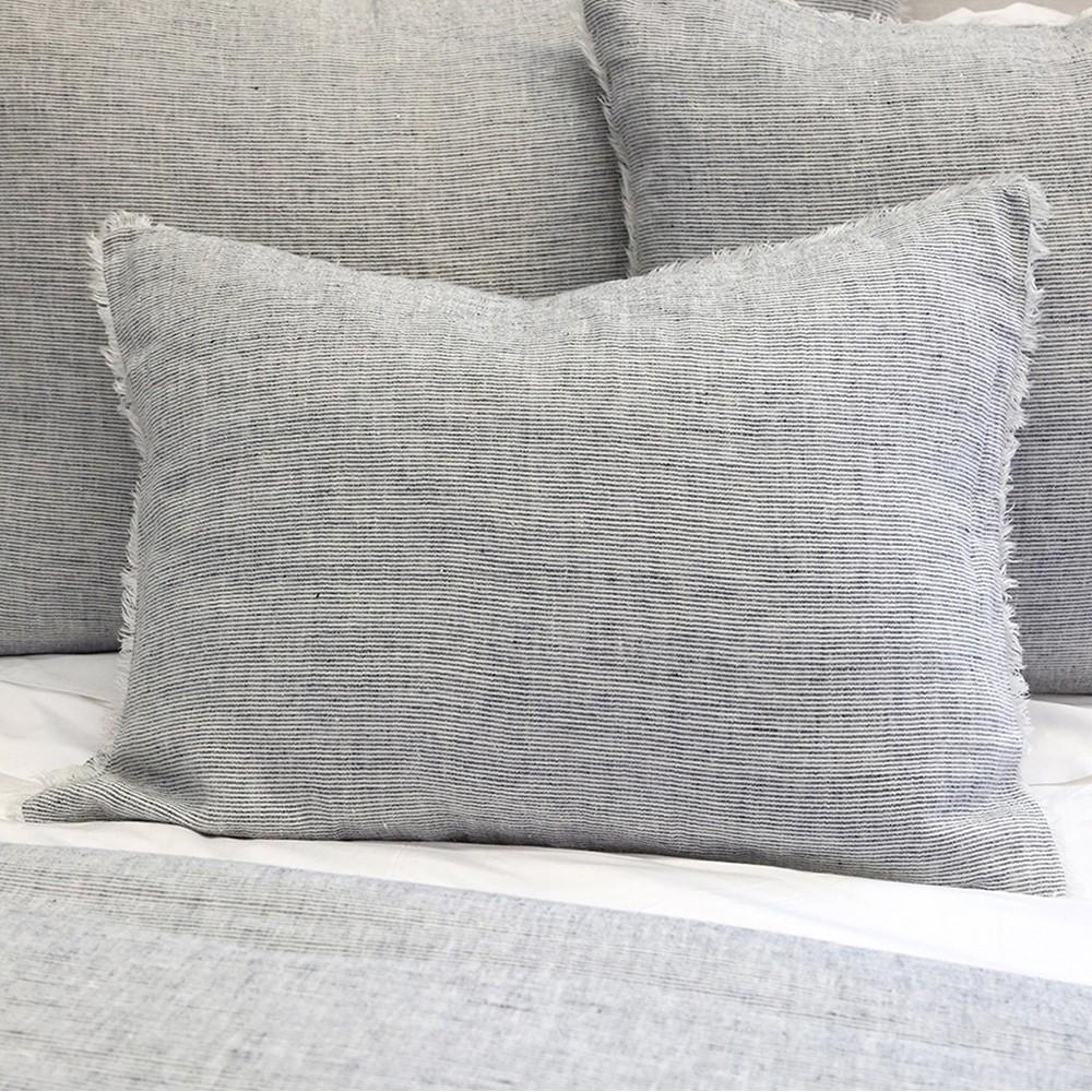 Subtle frayed edges of soft linen add a dash of unexpected detail to this Logan Collection. Woven with two different colored yarns for a heathered effect, the duvet cover and shams feature shell button closures.