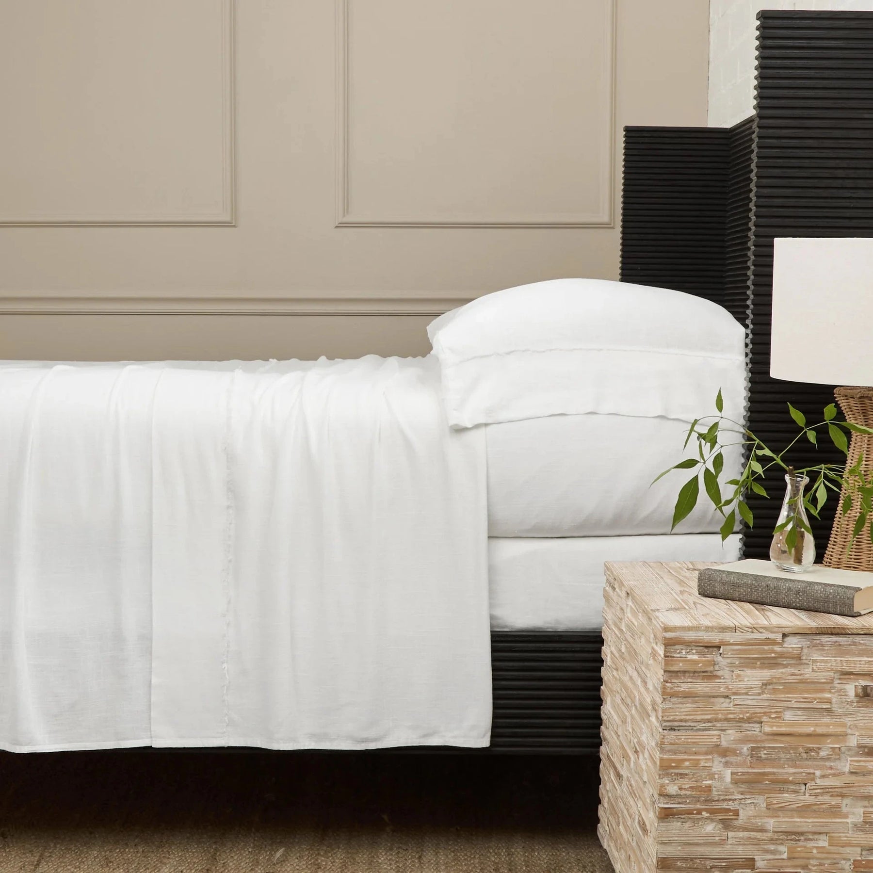 Effortlessly soft with a naturally lived-in feel, the Remi Bamboo Linen Frayed Sheet Set blends breathable bamboo and textured linen for a timeless sleep experience. Both hues bring a fresh, airy calm to any space, while subtle frayed edges add a touch of relaxed refinement.