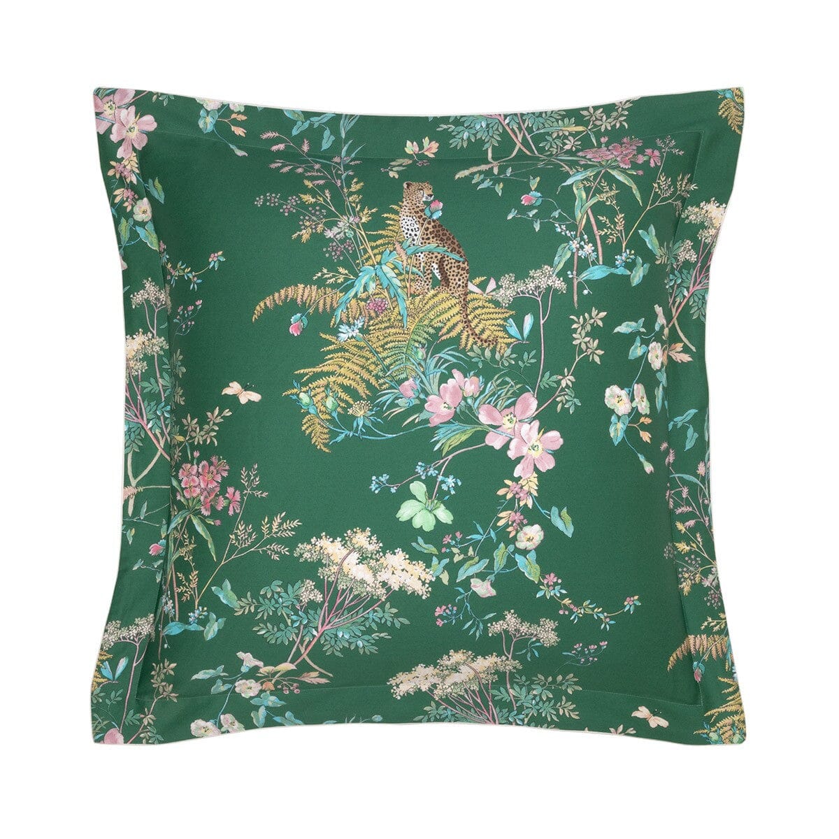 Between ethereal fauna and wild flora, the Contes bed linen set unveils a dreamlike, colorful design printed on luminous sateen, enveloping the bedroom in enchanting charm.