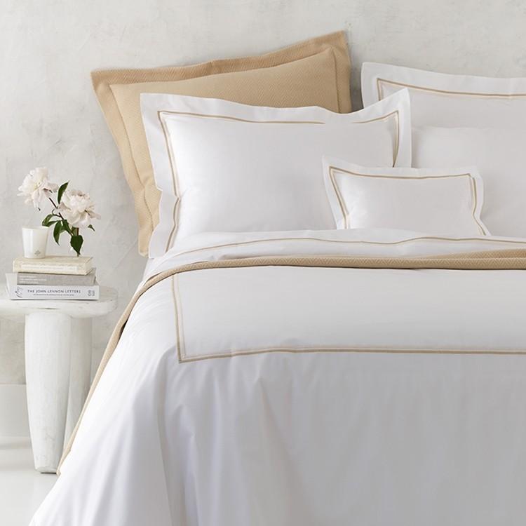 Our popular 350 thread count Sierra sheeting is accented with a pair of crisp lines of satin stitch embroidery in colors from subtle to cheerful. Essex brings a smart, European hotel feel and modern, elegant air to the bedroom.