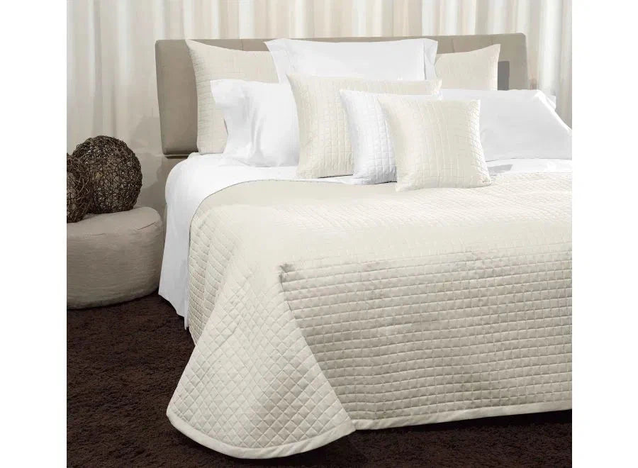 Crafted in Italy, the Masaccio Coverlet features a luxurious cotton sateen fabric with a 300 thread count, offering a smooth and breathable surface. Its 80 g/m² polyester filling provides lightweight warmth and durability, making it an ideal choice for year-round comfort. This expertly designed coverlet combines refined materials and meticulous craftsmanship to enhance your bedding with both elegance and practicality.