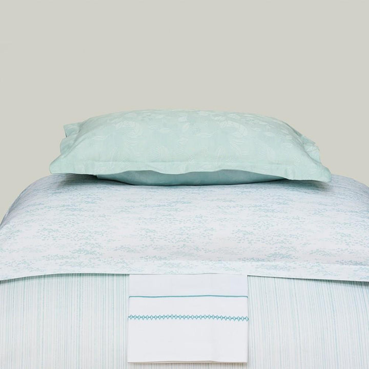 Jackie, our traditional design pre-washed cotton/viscose jacquard available in sea glass.