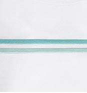 Crisp white percale sheeting features two lines of satin stitching tonal colors