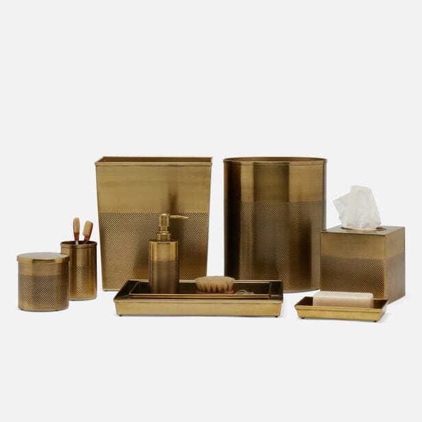 A unique take on stainless steel for the bath, our Hagen collection features a combination of smooth and diamond-pattern surfaces.