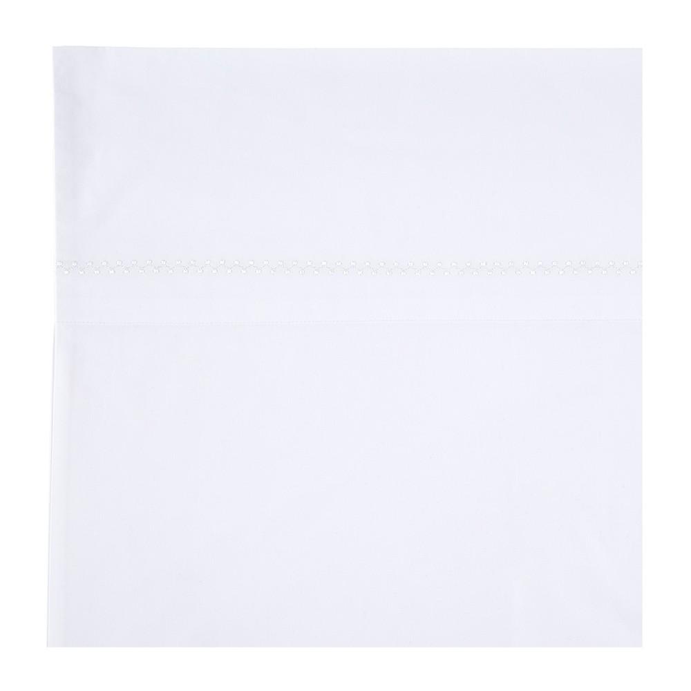 Printed on organic 300 thread count pure cotton percale: a finely woven, durable fabric that is exceptionally smooth to the touch. Made from long-staple, combed cotton for superior softness. Hand embroidery on sheets and cases.