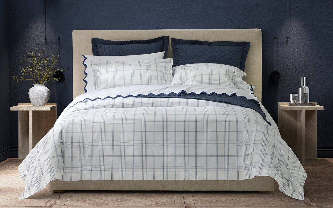 August Plaid King Duvet Cover Bedding Style Matouk Navy
