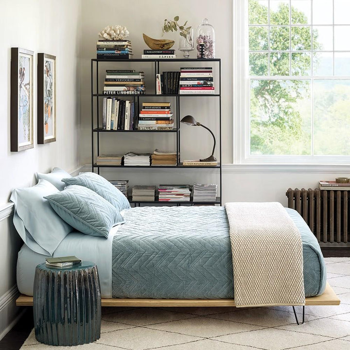 Variegated chevron stitching adds vintage glamor to sueded velveteen in this deliciously soft sham. Softly sandwashed pure cotton for a perfectly smooth matte hand, lightly filled and reversing to a dyed-to-match cotton voile back.