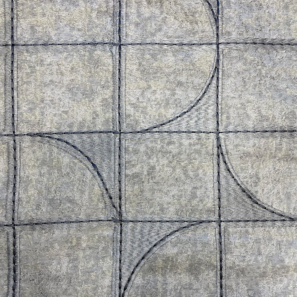 Soft grey, blue, and charcoal embroidery on a silvery jacquard with a graceful capsule design. Pillows include inserts. Color - Ice