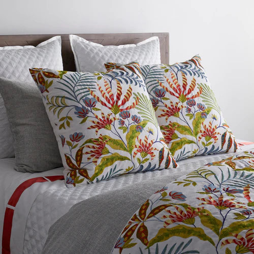 The Ann Gish Cloud Forest design is inspired by biophilia, energizing any living space with natural motifs. Delicate embroidery portrays a vibrant image of a verdant and lush rainforest, creating a tranquil environment that's perfect for relaxation.