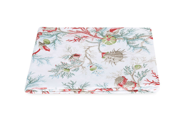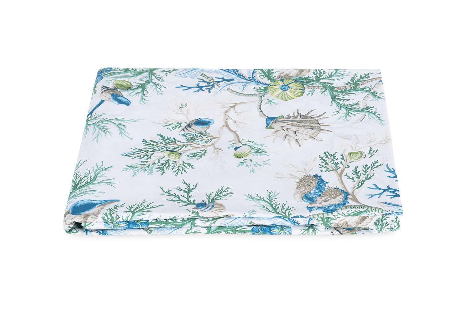 There’s a whimsical element to this deep-sea toile by Schumacher, filled with vibrant colors and maritime creatures that evoke a feeling of underwater elegance. Set in a linear pattern on 500 thread count printed Luca percale, Del Tesoro is oceanic fantasy at its finest.