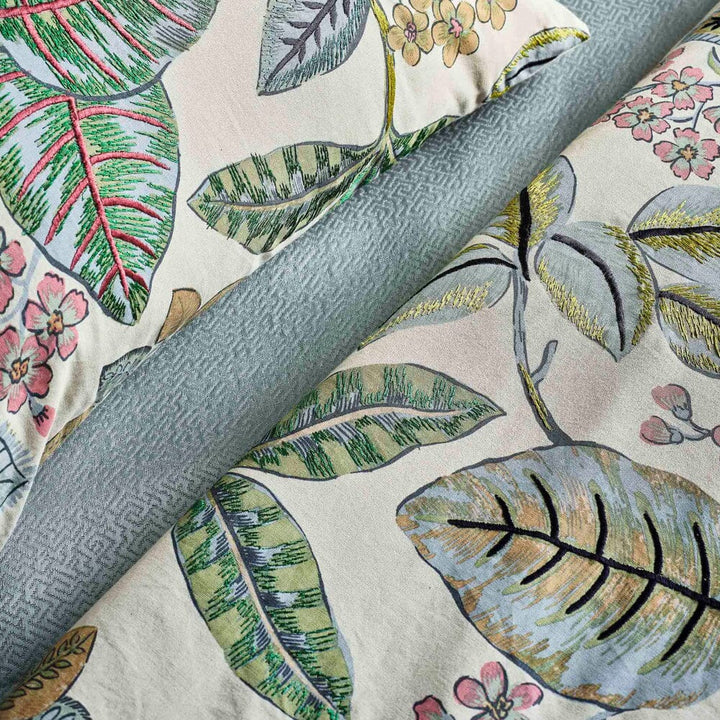 Experience the beauty of Hawaii with Ann Gish Lanai fabric. With a 100% cotton base, this printed and over-embroidered fabric invokes the tropical paradise of Lanai island with vivid detail and luxurious texture. Bring the tropics to any space.