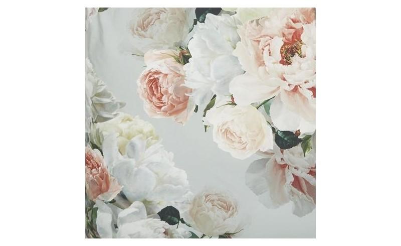 Stunningly romantic large-scale peonies are arranged in a dramatic and graphic layout on a soft gray ground to create a modern and relaxed floral bedding. This statement design is digitally printed onto 300 thread count cotton sateen, reversing to an all over gray tonal peony pattern.