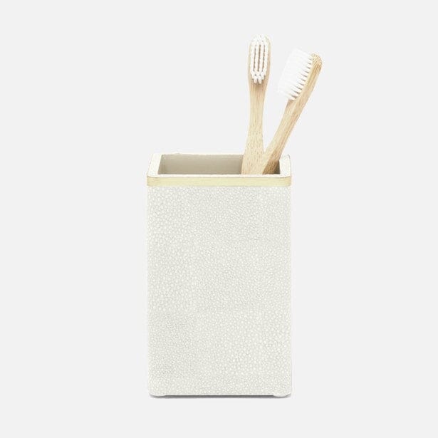 Pairing faux shagreen with delicate gold or silver trim, Bradford elevates the classic bathroom accessory set to peak luxury.