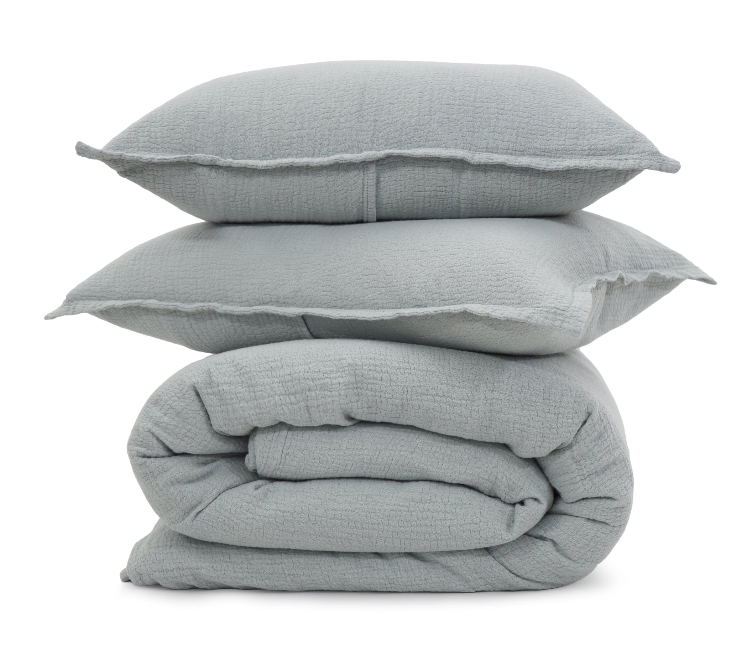 The wavy, pebbled texture on the Waverly creates a gentle and soft duvet to wrap yourself into for a good night’s sleep. It features a ½” flange, a shell button closure on the duvet cover, and an envelope closure on the shams.