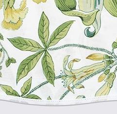 An 18th century botanical design from the Schumacher archive is printed on our Luca sheeting and finished with a subtle scallop.