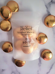 Our Relief Menthol Shower Steamer is a powerful combination of cooling, anti-inflammatory essential oils. Peppermint, Eucalyptus and Rosemary may reduce muscle soreness and other ailments that may be causing stress. When inhaled, a cool, refreshing mist is released throughout your shower for an instant spa experience.