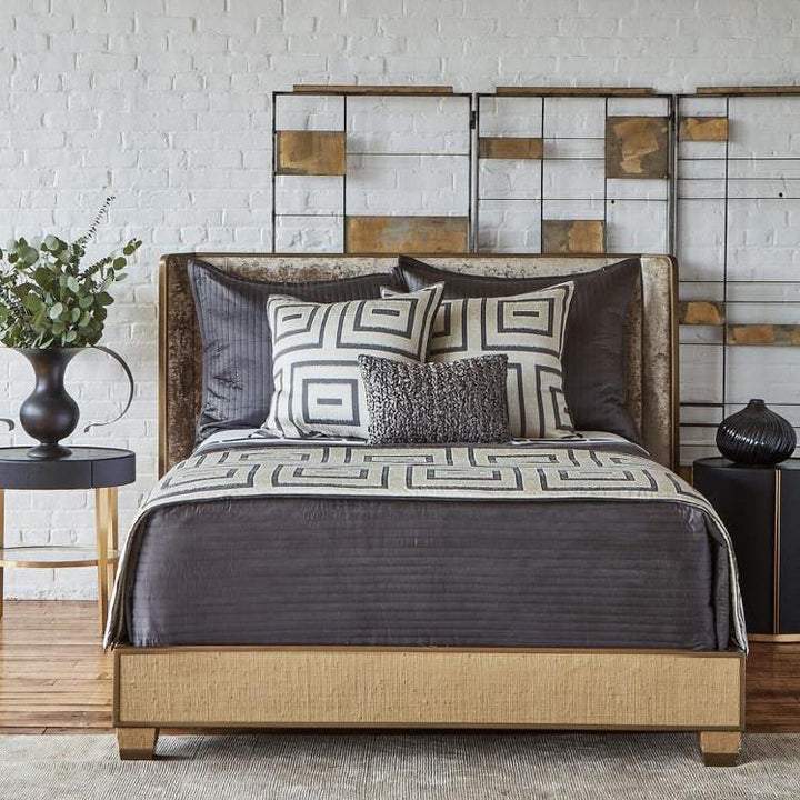 Modern & chic, Unmazed jacquard has an incredibly soft hand. All pieces have an inset flange in Charcoal charmeuse silk.