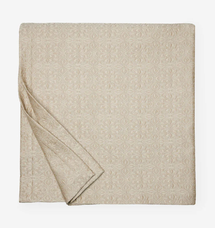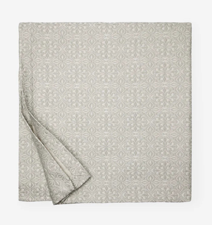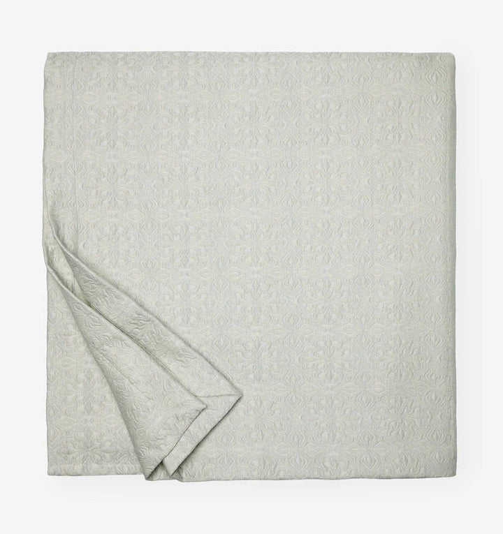 A nod to centuries-old tile motifs, Veroli’s intricate pattern is yarn-dyed and woven in Italy into a soft, lucent, lightweight coverlet and shams.