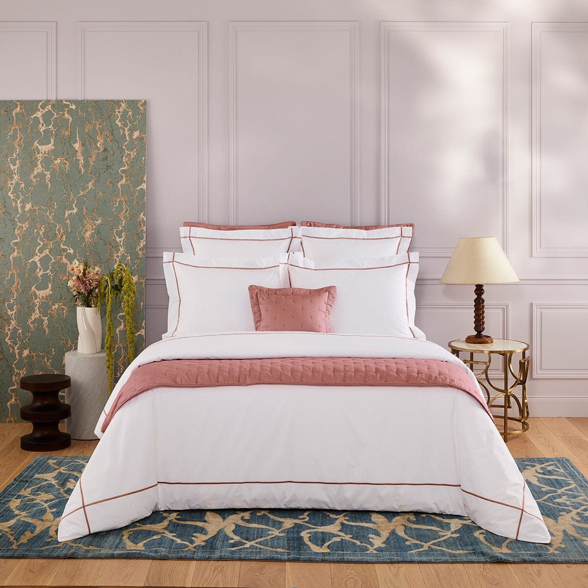 100% Supima long staple combed cotton, embroidered solid percale, 500 thread count
