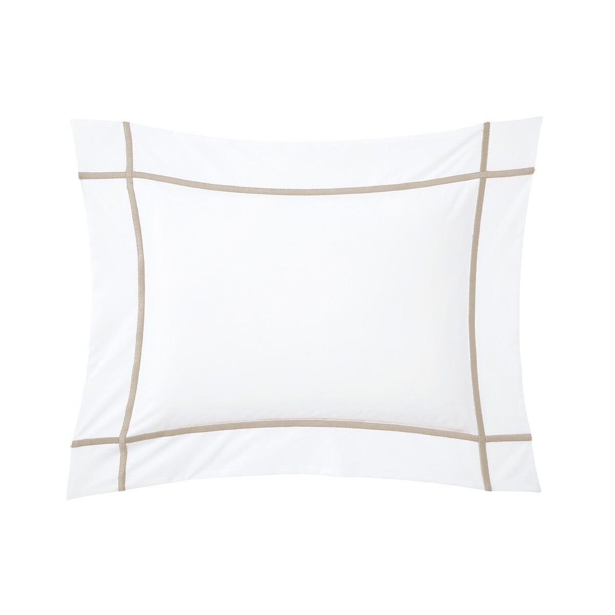 Shams are solid white with bourdon embroidery lines along all four sides with intersections in each corner and envelope closure.